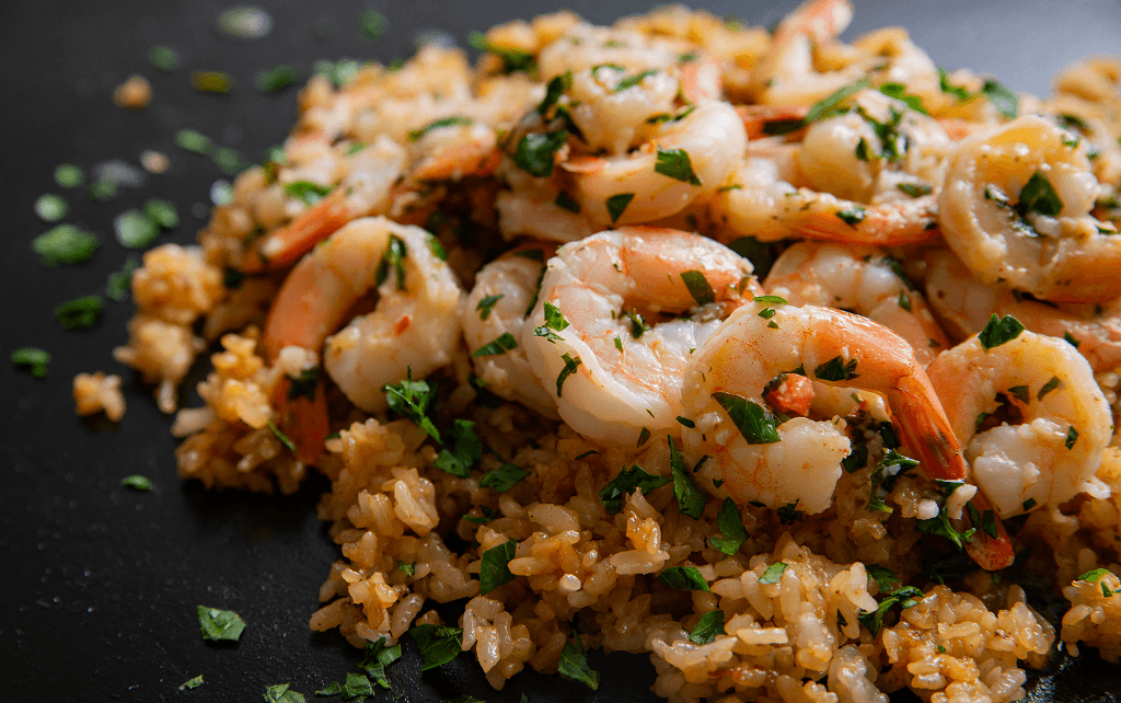 - Plate the rice first, then top with the shrimp. Sprinkle more chopped parsley on top and serve immediately.