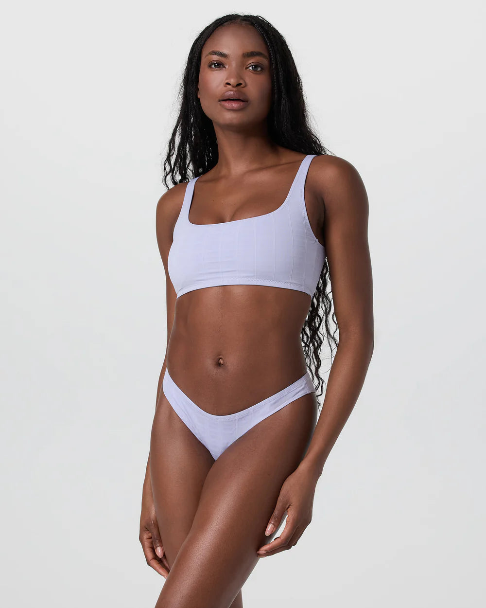 A u-shaped neckline and fixed straps give the Encinitas Plaid Bikini Top the support you need on sport-filled beach days. It has interior power mesh for extra security and a modern plaid print.
